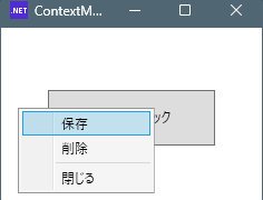 XAML<Grid> <Button Content="ここを右クリック" Width="150" Height="50"> <Button.ContextMenu> <ContextMenu> <MenuItem Header="保存" ...