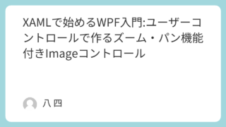 コンピュータ XAMLで始めるWPF入門:ユーザーコントロールで作るズーム・パン機能付きImageコントロール 画像を表示するImageコントロールをベースにスクロール、Ctrl+マウスホイールによるズーム、マウスドラックによるパン機能を付与した、ユーザーコントロールのサンプルコードになります。ソースコード・ユーザーコントロール本体ファイル名:Zoo... 2025.10.11 コンピュータ
