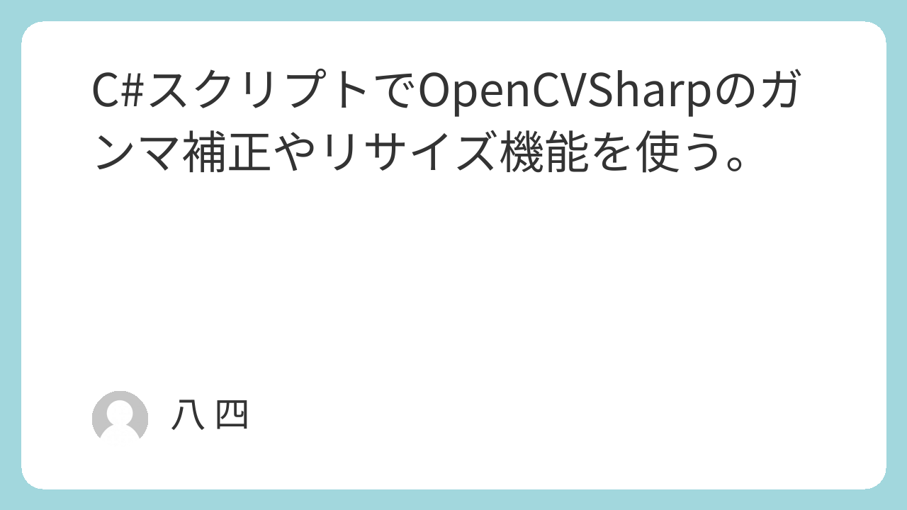 スクリプトでお手軽にOpenCVを使うのであればPythonが定番ですが、Windows環境だと日本語のパスの扱いに難があるのでC#スプクリプトを使って見ました。