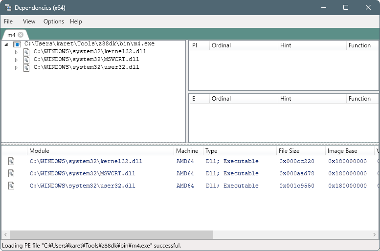 EXEファイルで参照しているDLLを調べるツール「Dependencies」を試してみました。