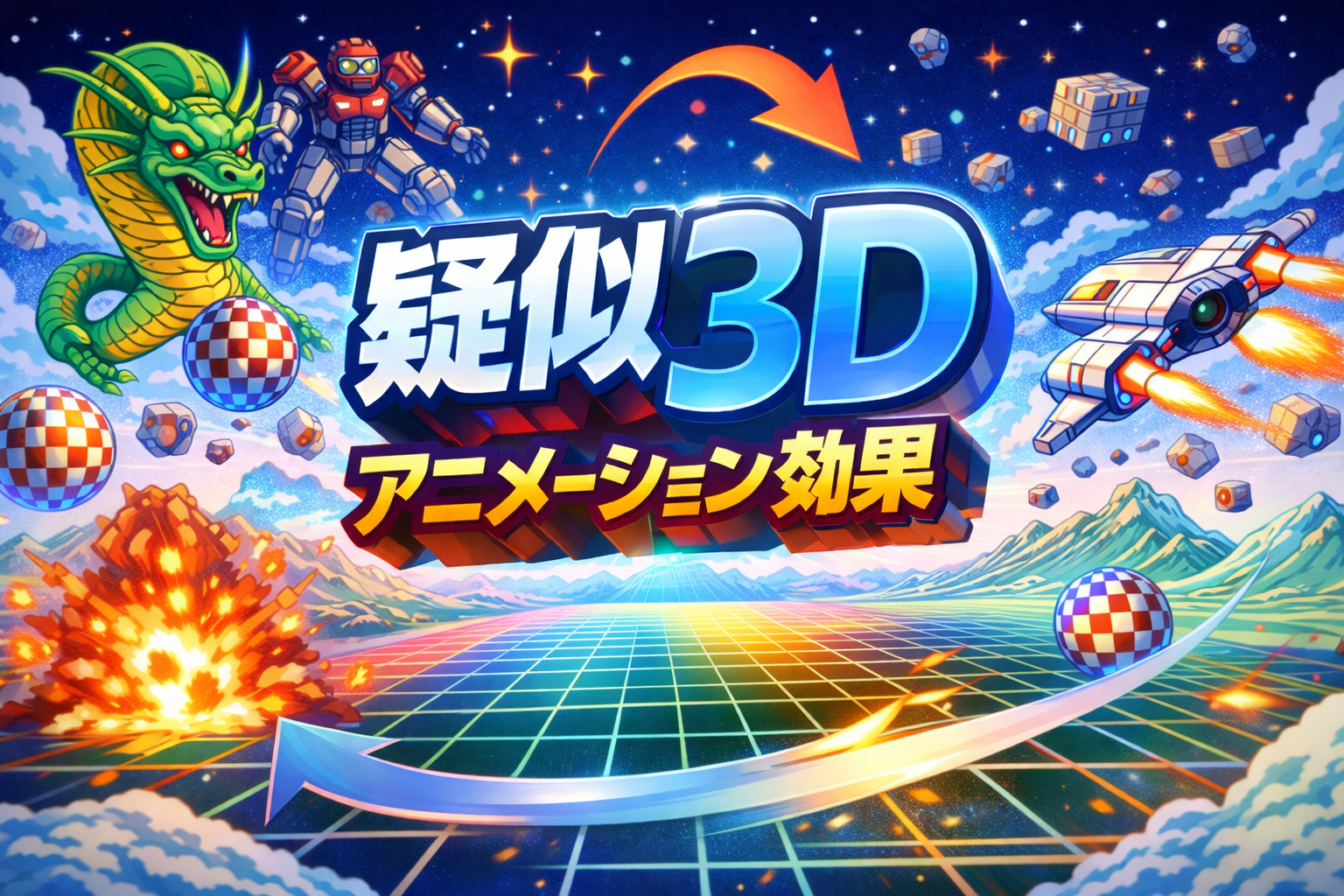 やっていることは単純なスケール変換ですが、それだけで奥行きが成立してしまうのが、疑似3D表現の面白いところです。