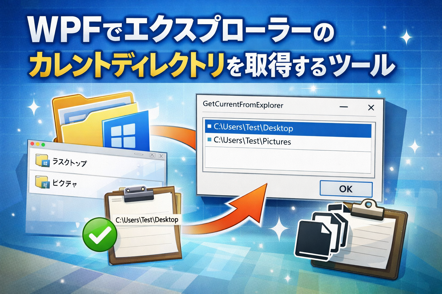 WPFでエクスプローラーの「現在開いているディレクトリ」を取得し、クリップボードへコピーする小さなツールを作成します。