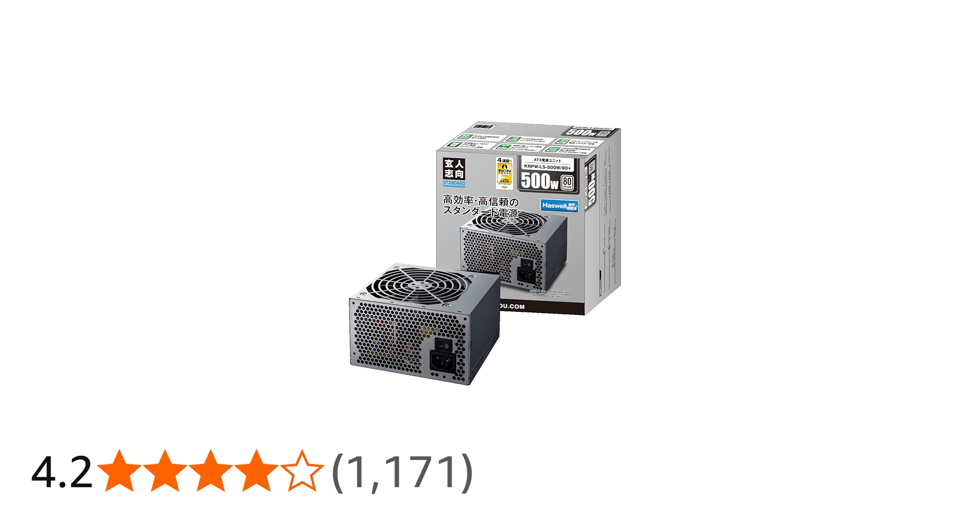 - 玄人志向 STANDARDシリーズ 80 PLUS 500W ATX電源 KRPW-L5-500W/80+