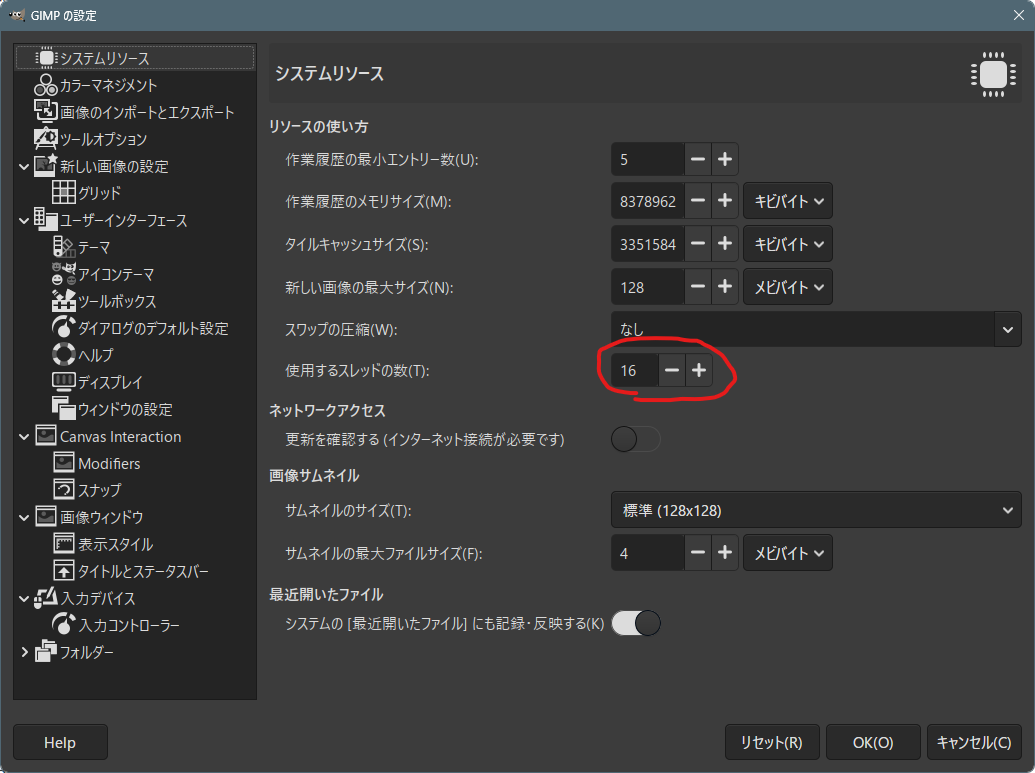 GIMP が想定している CPU のコア数は 4~8 コア程度で、