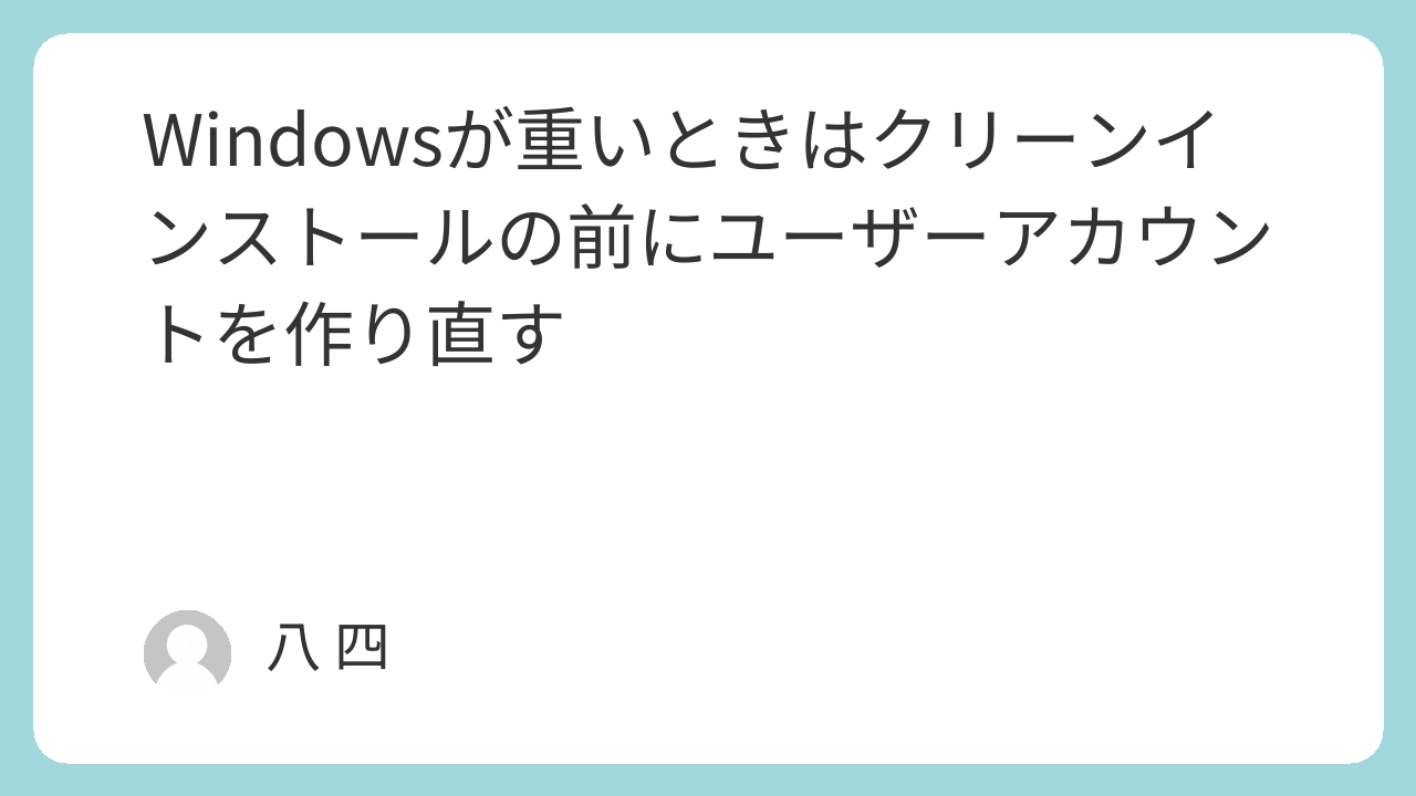 Windowsが重いときはクリーンインストールの前にユーザーアカウントを作り直す