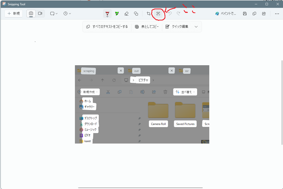 Snipping Toolをは「テキストアクション」機能を使うと、スクリーンショット画像を文字認識(OCR)させることが出来ます。