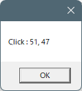 座標がメッセージボックスで表示されます。