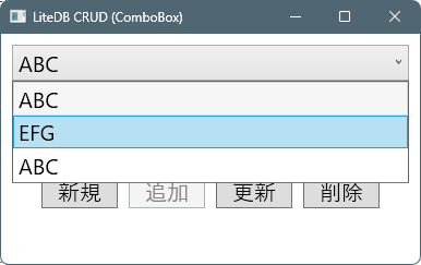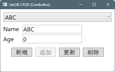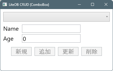 Title="LiteDB CRUD (ComboBox)" Width="400" Height="250">