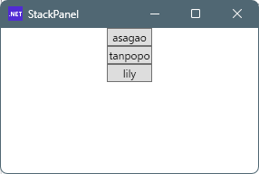 StackPanelは、子要素を縦または横の一方向に隙間なく並べるためのレイアウトコンテナです。