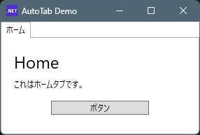 <TextBlock Margin="0,8,0,0" Text="これはホームタブです。" />