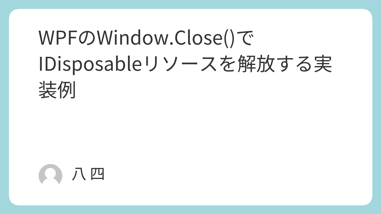 コードビハインドでウィンドウが閉じられたタイミングでDispose()が必要なプロパティを解放するサンプルコード