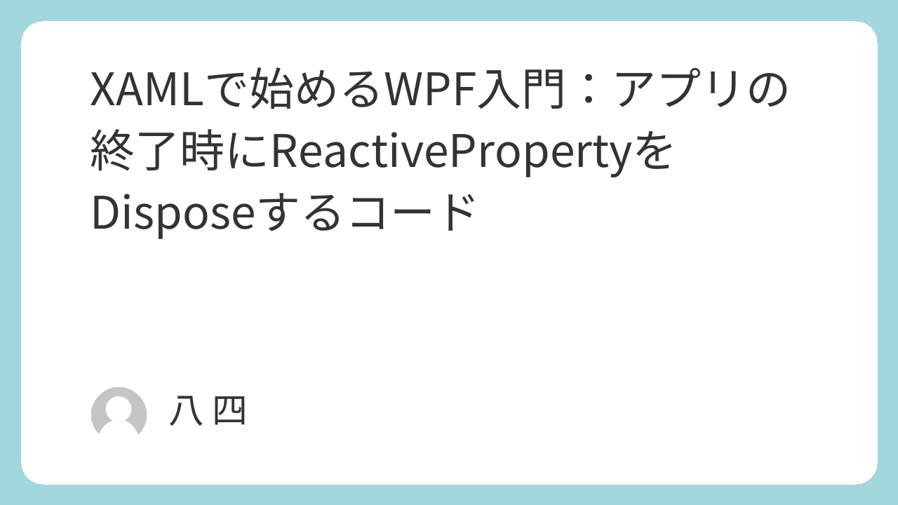 ReactivePropertyはWPFのViewModelでバインド可能なプロパティを簡単に生やすことが出来て非常に便利です。ただ、IDisposableなので使用後にDispose()を呼ぶ必要があります。