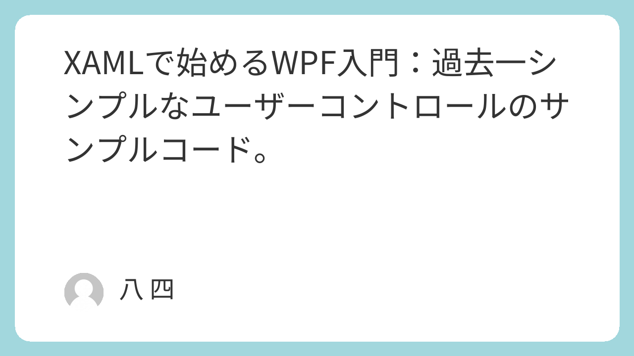 個人的にWPFの学習の最終段階はカスタムコントロールだと思っていましたが、汎用的なGUIコントロールを使う場面は、個人開発では意外と少なく、それに労力を払うより、ユーザーコントロールでソースコードを分割するぐらいがちょうど良い感じがします。