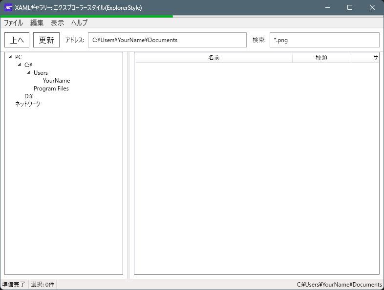 Title="XAMLギャラリー: エクスプローラースタイル(ExplorerStyle)">
