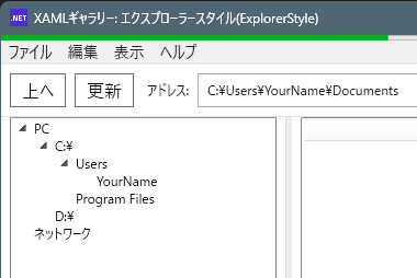 Title="XAMLギャラリー: エクスプローラースタイル(ExplorerStyle)">