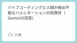 コンピュータ バイブコーディングと人間が検出不能なハルシネーションの危険性(Geminiの回答) 生産性の裏側にある「見えない地雷」 近年、プログラミングの世界はAIによるコード生成(一般に「バイブコーディング」と呼ばれる行為)によって劇的に変化しています。GitHub Copilotに代表されるLLM(大規模言語モデル)ベースのアシス... 2025.10.15 コンピュータ